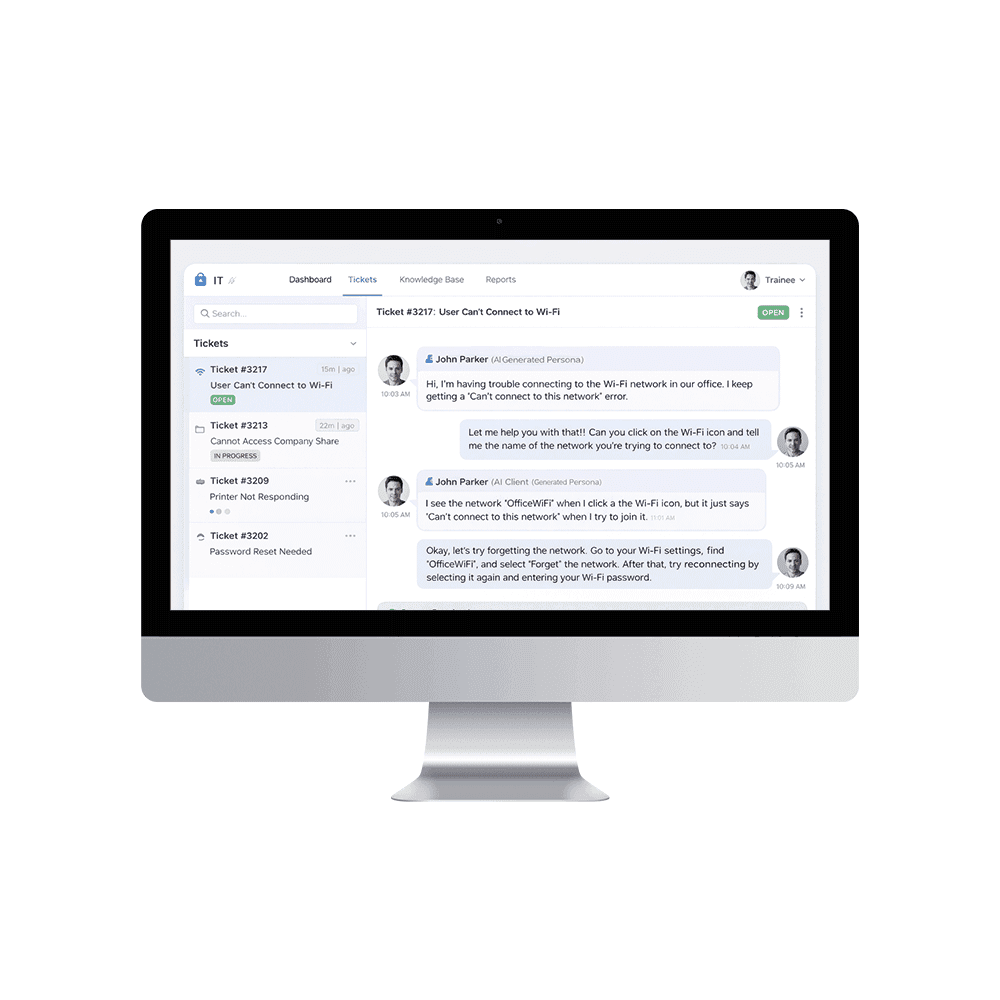 An AI-powered simulation platform that recreates real-world IT support scenarios, allowing students to practice technical troubleshooting and client communication while enabling measurable performance evaluation.